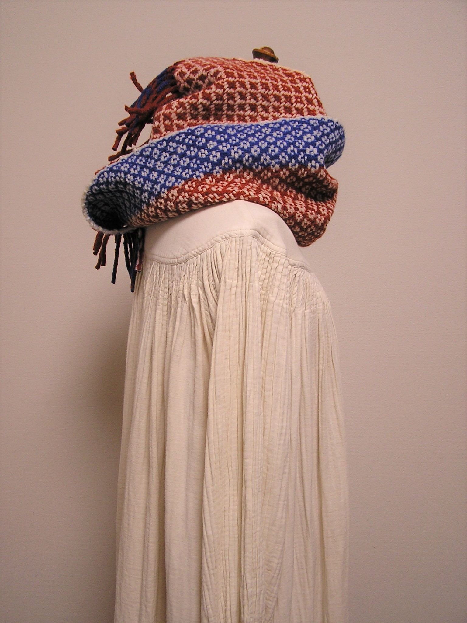 レンガ色と青の組み合わせ。
