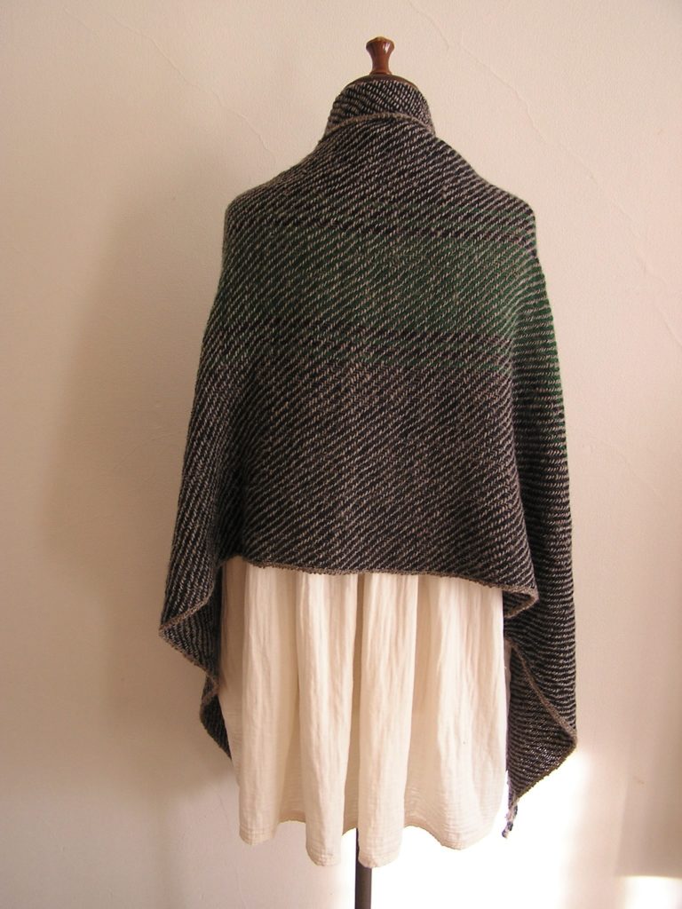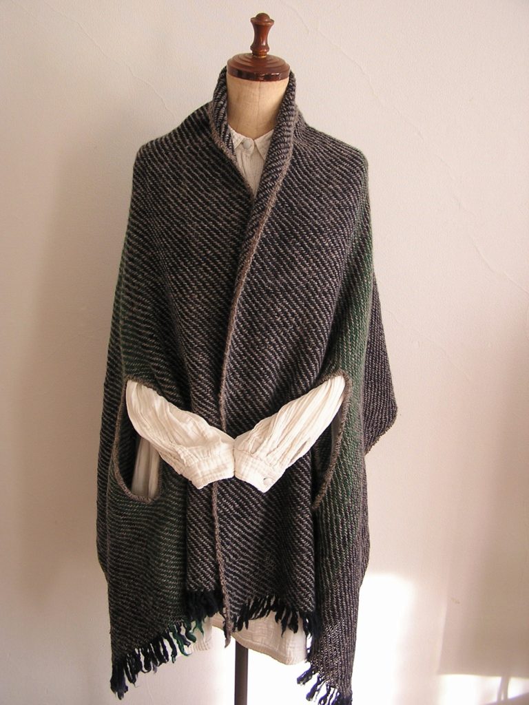 いつものショールに手を通せる穴を作りました。