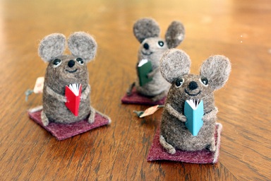 本を持ったお団子ちゃんとねずみ君、羊毛フェルトこけしを納品予定。