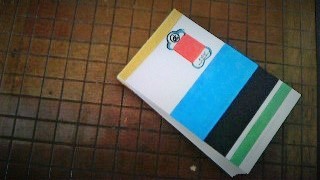 マスキングテープでボーダー柄にし、メモ帳を作る。