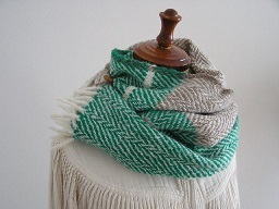 写真のようにボタンをループに留めてゆったりと巻くことが出来ます。