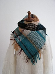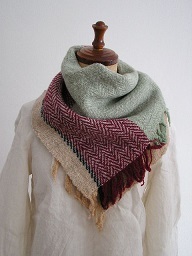 三角に折って後ろで結ぶ(もしくは角を結ばず間に挟み込む)ウールネッカチーフ3点。
