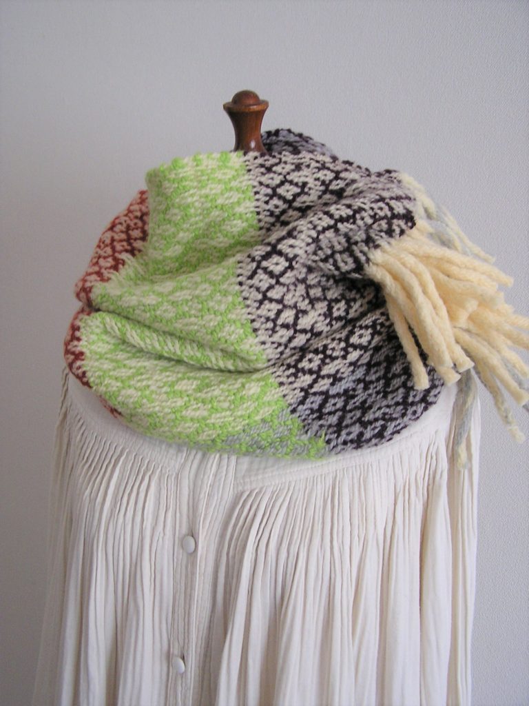 楽しい気持ちになるホームスパンスヌード・マフラー・ショールなど、冬の織物を制作しています。