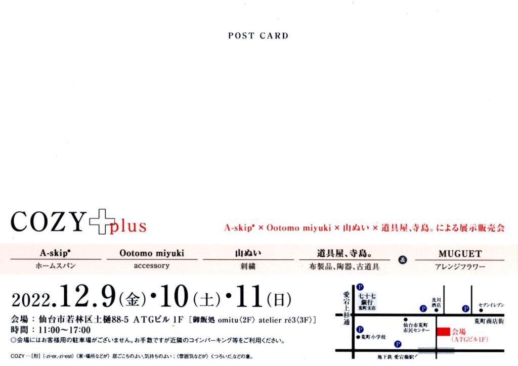 道具屋、寺島。さんにお声がけいただいてCOZY+plusに参加します。