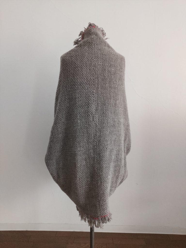 お尻まですっぽりと隠れる羽織ものを制作しました。