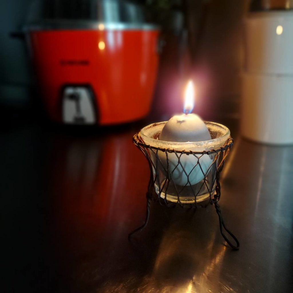 卵型だけに不安定なのでキャンドルホルダー必須アイテム。