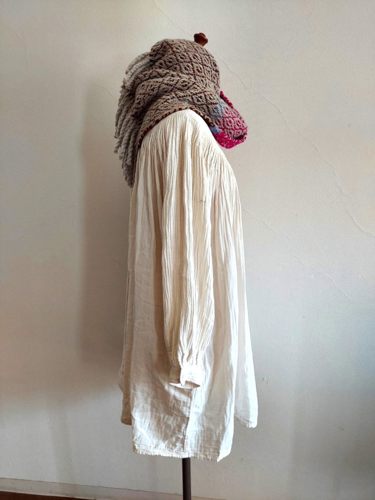 雪の結晶柄スヌードの仕上げをしました。