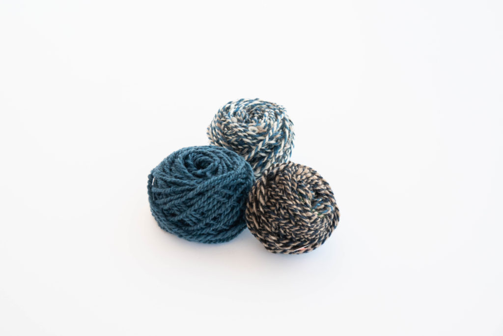 藍染め手紡ぎ糸と撚り合わせて1本の糸にした